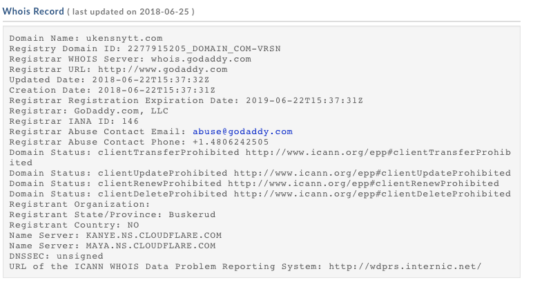 Ifølge tjenesten DomainTools ble domenet NorskNaturInformatikk.com opprettet 23. april 2018.