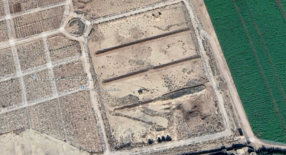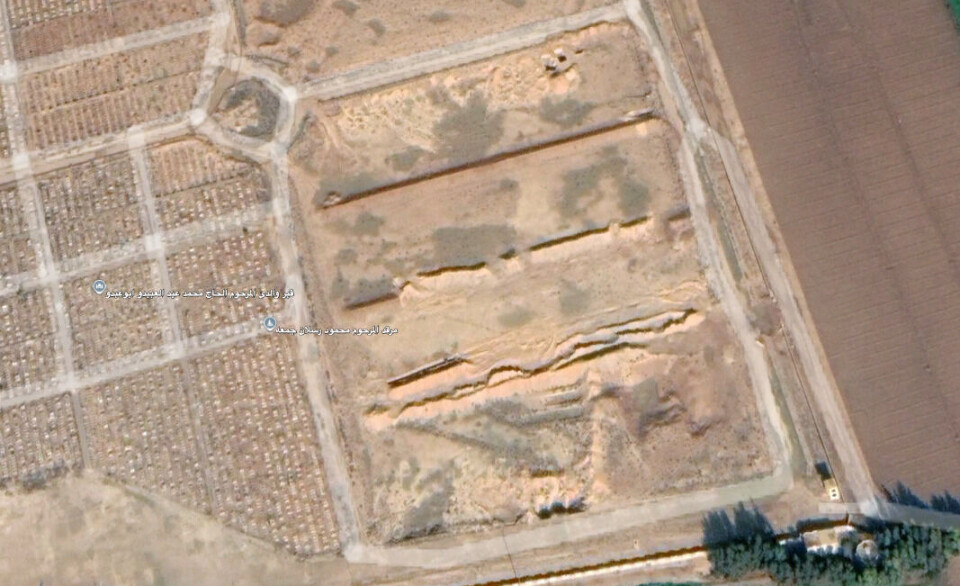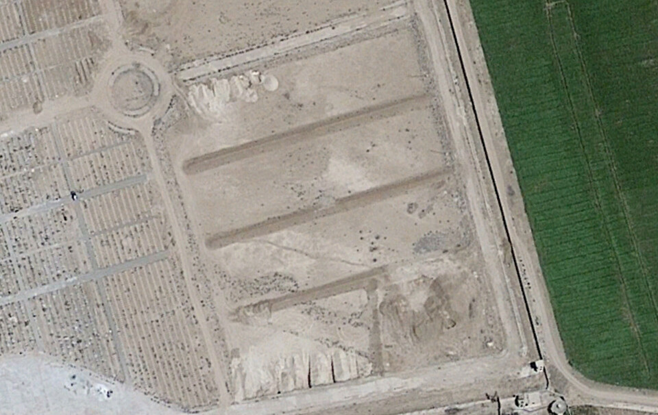 Det er ikke bare disse hullene som viser det som kan være massegraver på det store området. På satellittbilder fra Google Earth kan man fra november 2018 se begynnelsen av gravingen av en stor grøft ved siden av den ene sandhaugen.